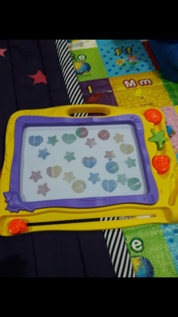 ให้ลูกน้อยได้ฝึกเขียน-ฝึกวาด ตามจินตนาการ เวลาวาด จะได้เส้น 4 สีต่างๆ กัน เวลาต้องการลบแค่เลื่อนก้านด้านขวามาด้านซ้ายแค่ทีเดียวภาพก็ลบหมดแล้วค่ะ เขียนง่าย ลบง่าย พกพาไปเขียนได้ทุกที่ทุกเวลา ใช้ได้ตลอดเลยค่ะ ขนาดสินค้า : 40 * 31 cm บรรจุภัณฑ์ : กล่องสินค้า (แพคกันกระแทกให้อย่างดีค่ะ)